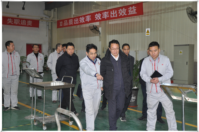 景丹一行深入廠區(qū)車間,實地察看了解了企業(yè)生產(chǎn)經(jīng)營、安全生產(chǎn)、精益管理、及企業(yè)發(fā)展思路等方面的情況。每到一處,駐足認(rèn)真聽取公司的情況介紹,與公司領(lǐng)導(dǎo)深入交流,了解公司在發(fā)展過程中遇到的問題,共同商討應(yīng)對之策。在聽取企業(yè)發(fā)展思路后,景丹對企業(yè)的精益管理和發(fā)展規(guī)劃給予充分肯定。